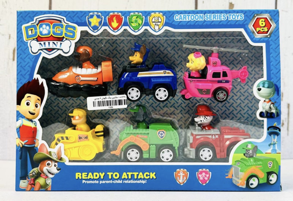 این محصول برگرفته از انیمیشن معروف سگ های نگهبان (PATROL DOGS) بوده ماشین ها بصورت عقب کش قابل استفاده است